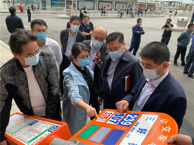 國慶節(jié)前夕,市交通運輸局公交處處長高永宏、辦公室主任王笑春、執(zhí)法隊公交執(zhí)法大隊大隊長田豐柱、出租汽車執(zhí)法協(xié)調處處長王軍等一行來到沈陽客運集團北站公交樞紐站,檢查公交樞紐站的安全生產、疫情防控及國慶節(jié)期間公交運營保障情況。