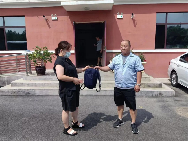 當天下午,一名乘客來到車隊尋找背包并進行詢問,車隊副隊長張春亮說:“背包撿到了,一直在車隊代為保管,請您放心?!焙藢崯o誤后,車隊副隊長把背包交還給失主,同時囑咐乘客以后一定要好好保管自己的隨身物品。這時,正好趕上駕駛員魏軍跑圈回來,該名乘客當面對魏軍表達了感謝之意。魏軍表示不用客氣,這是自己應該做的,不能辜負乘客對我們駕駛員的信任。